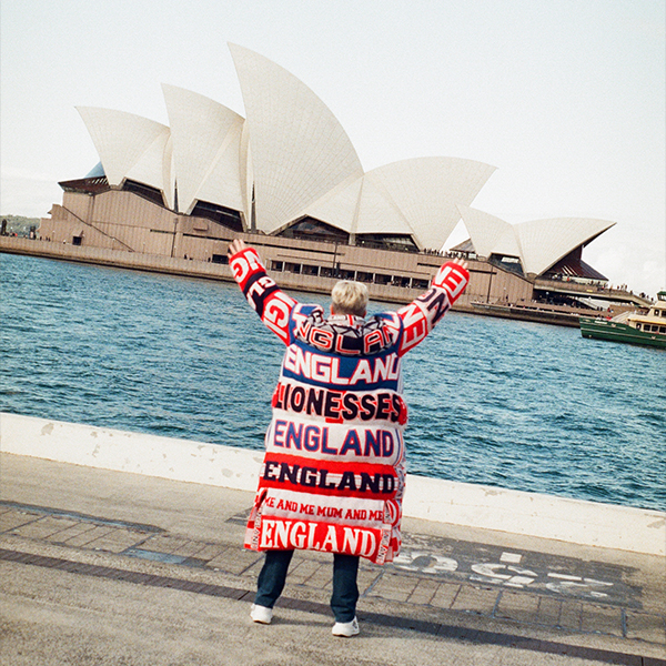 The Lionesses Touchline Coat draws on the cultural energy of football terraces, particularly chants, songs and clothing that hold collective meaning by reclaiming and feminising them to centre female supporters’ experiences, when their own stories were overlooked. The garment, a nod to Arsene’s Wenger’s Arsenal puffer coat, was commissioned for the England Women’s Squad Announcement film ahead of the UEFA Women’s EURO 2022, a tournament the England team memorably went on to win.