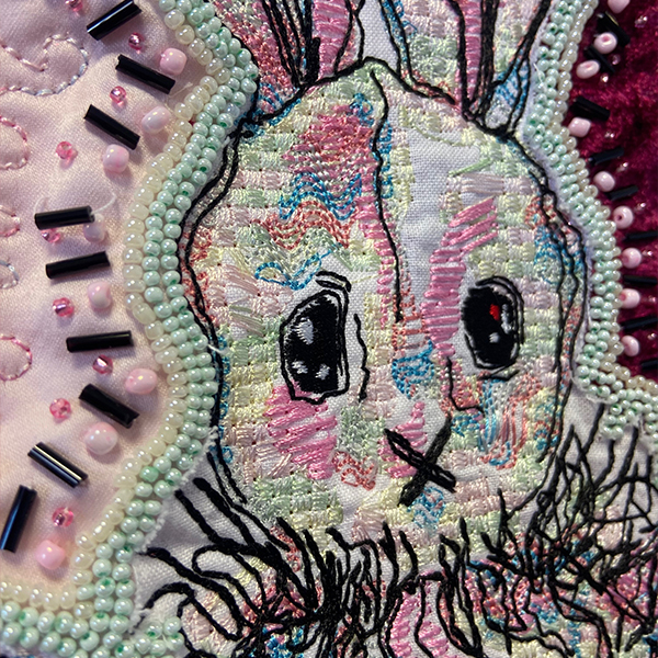 “The portraits featured in For the Love of Textiles depict the two rabbits that inspired my recent exhibition Rabbit in Bury Art Museum, my white rabbits: John and Peter.
