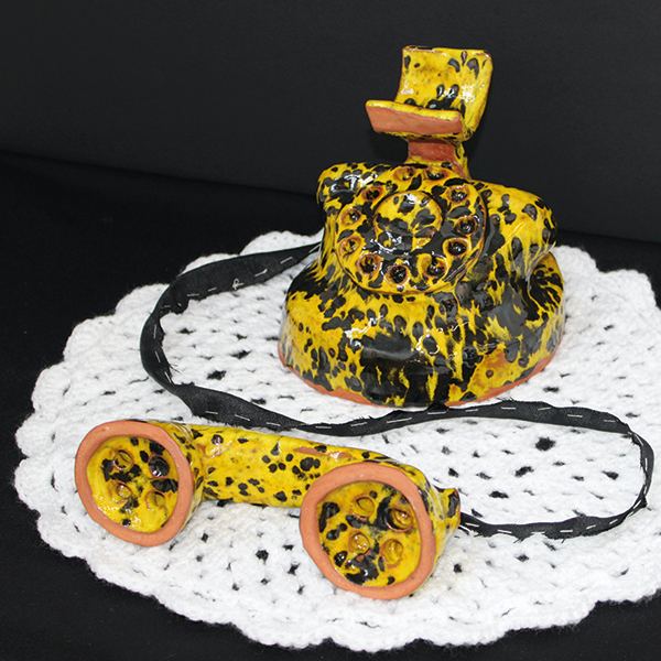 Y-ello?’ by Lauren I’Anson is about the idea of a lack of communication, isolation and the desire to reach out but only having a faulty device. This sad context combined with a banana-going-bad aesthetic creates a contrast that imparts a humour to a feeling everyone has once felt.
