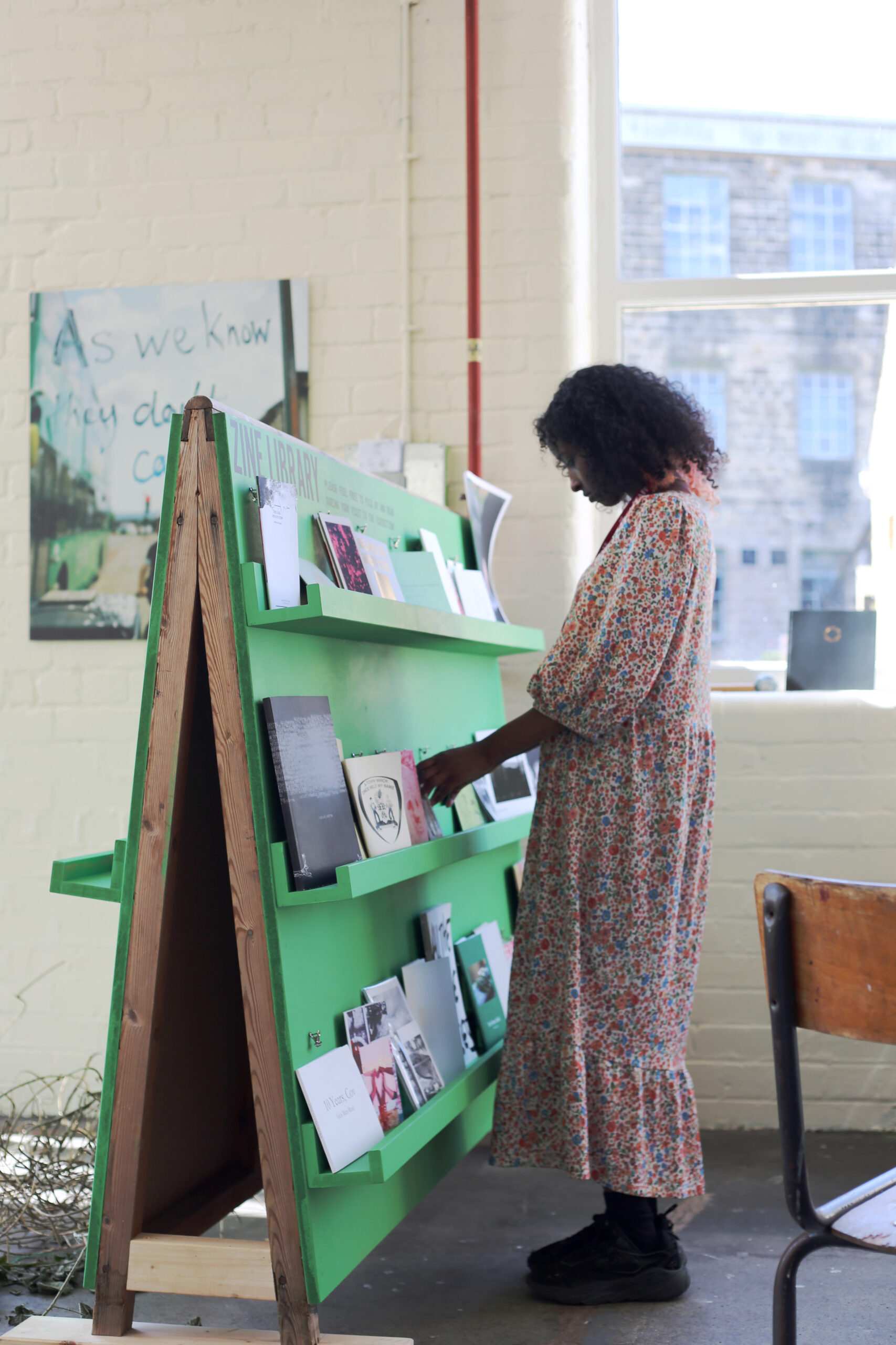 Amal joined us at the end of her BA course at Leeds University for a 2 month paid internship as a member of the Arts Team. She joined us just before the set up week of Many Hands, where she was instrumental in setting up the Zine Library. She also reached out to new organisations across the North to help spread the word about the Gallery and the Mills’ cultural and heritage offering, supported Sonia during Summer School, and created audio descriptions for some of the work featured in the Gallery (amongst millions of other tasks).