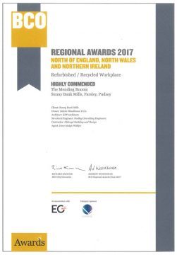 We were shortlisted for the prestigious British Council of Offices Northern Awards 2017 and were pleased to come away with Highly Commended for our Mending Rooms project. We were beaten into second place by a project backed back RIBA and with ten times our budget. These awards are important as they signal to the property industry that we can deliver top quality office accommodation. They are a great credit to out team at KPP Architects and Dove Haigh Phillips aswell as to the contractor on this occasion, Oldroyd Building and Design.