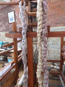 Things are beginning to progress in the warping of the hand loom in the Archive thanks to Sarah. A clever way of keeping all that yarn in place and rather beautiful in it’s own right.