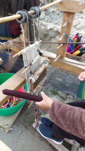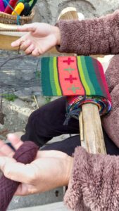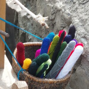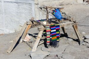 On the dusty roadside at Muktinath, I discovered crudely constructed wooden looms with beautiful brightly coloured traditional weaving of scarves in soft cashmere. It’s easy to see the similarities with the Dobby looms here in the Archive and Weaving Shed at Sunny Bank MiIls.
