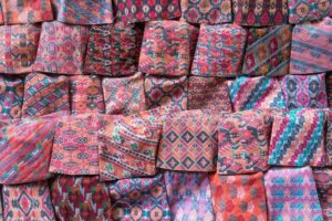 Dhaka fabric is a hand-woven cotton textile used in regional traditional dressing of the Limbu people. Men wear a dhaka topi (hat) while women wear a dhaka mekhli (dress) made from the fabric. Dhaka fabric is now majorly produced by weavers in Nepal’s capital, Kathmandu.